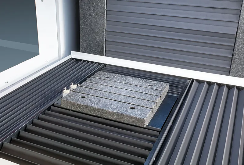 ACSYS offers the precision package for high precision requirements of accuracy class 2. Among other things, it consists of additional measuring systems. Systems equipped with this feature also have a reinforced machine bed for maximum stability and a ground steel plate with T-slots to DIN 650, H 12.