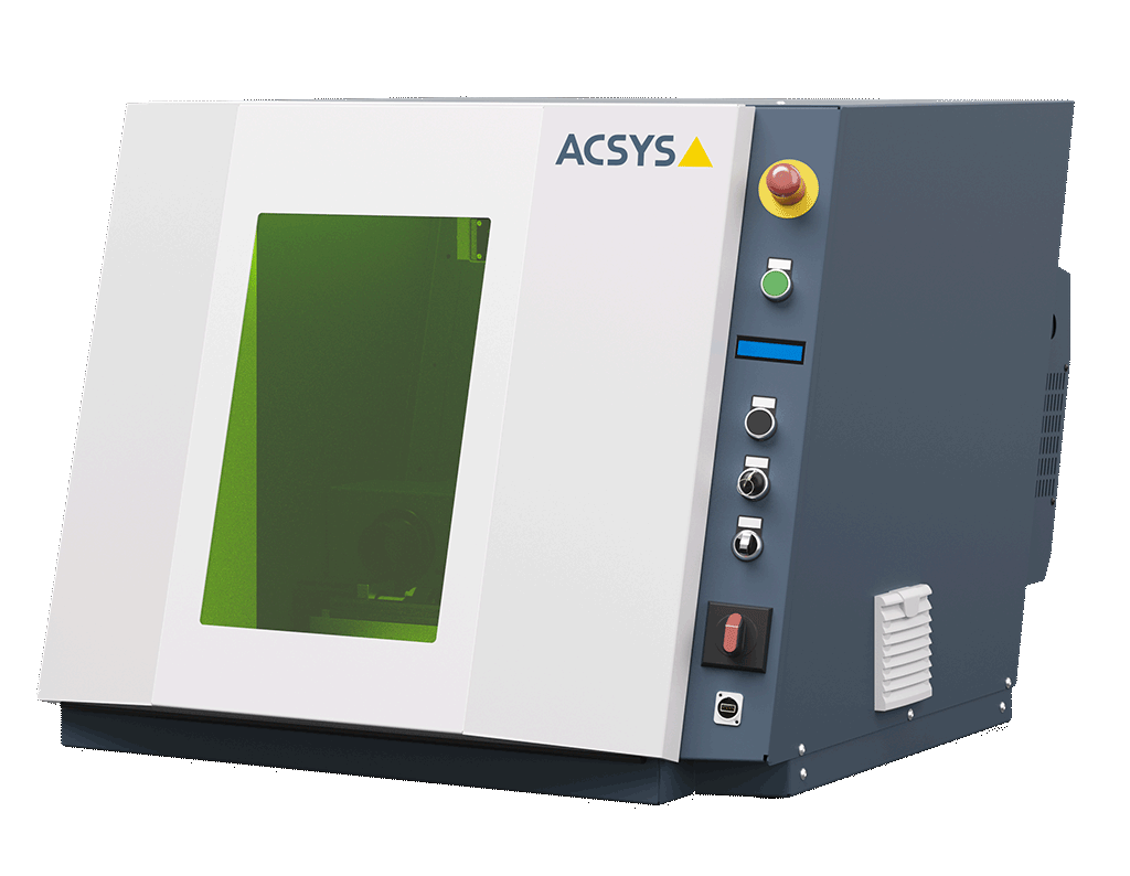 A high-precision laser system solution for three completely different laser processes: The patented quick-change system from ACSYS enables marking, engraving and cutting with laser technology. The laser is guided by a galvanometer scanner and either gravure optics (F-theta, plane field optics, telecentric optics) or a laser cutting head is attached.