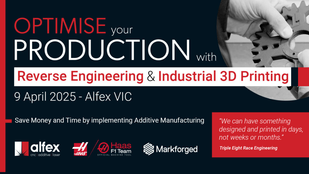 Join us at our Brisbane showroom on April 2, 2025, for an exclusive event on Reverse Engineering & Industrial 3D Printing. Learn how cutting-edge Markforged 3D printing can help your business save time and money by streamlining production. Discover real-world applications of additive manufacturing and see live demonstrations of advanced 3D printing, and manufacturing solutions.